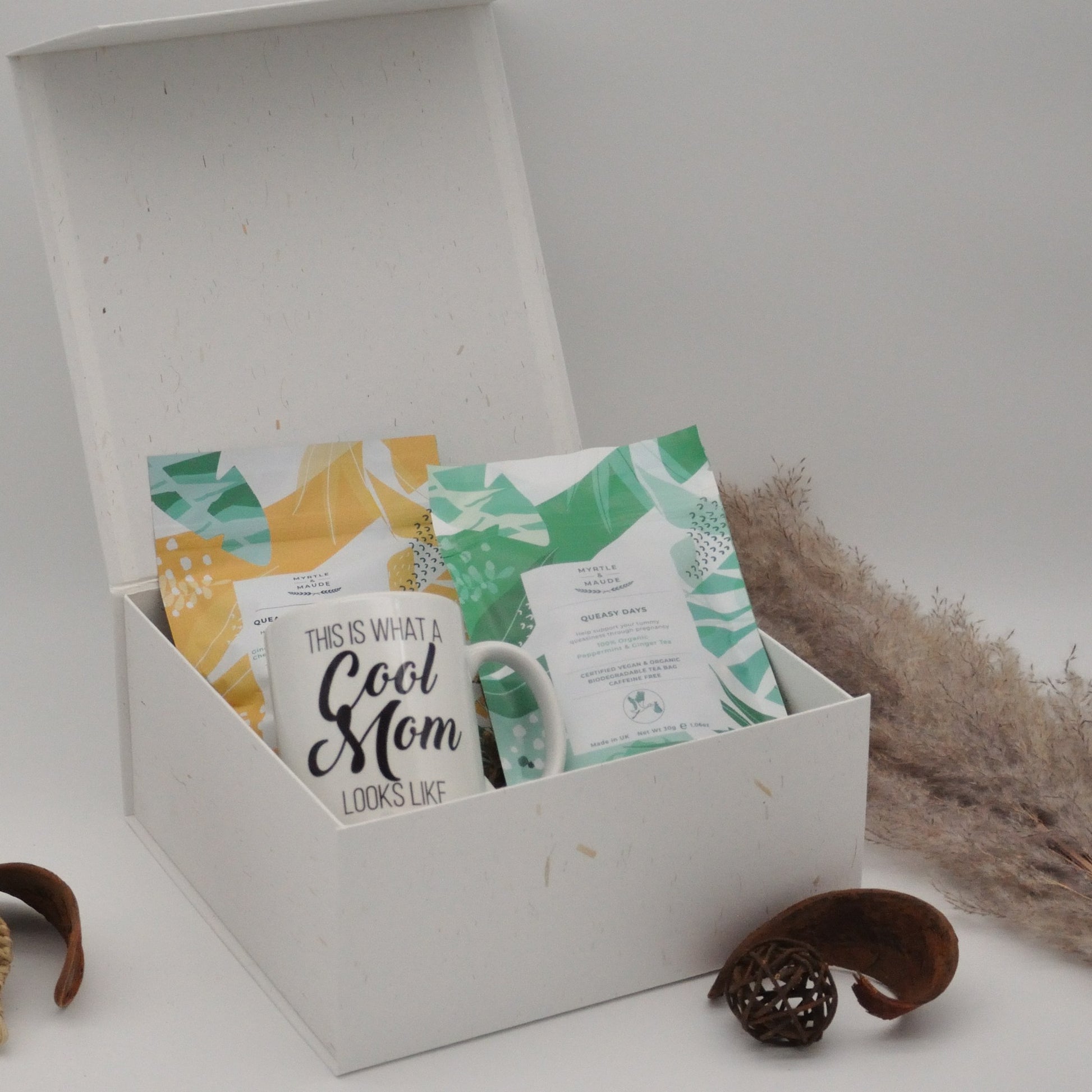 Überraschen Sie eine werdende Mutter mit unserer sorgfältig zusammengestellten Geschenkbox, die perfekt ist, um morgendliche Übelkeit zu lindern und ein Lächeln zu zaubern. Dieses wunderschöne Set enthält drei hochwertige Produkte, verpackt in einer eleganten Wowwy-Geschenkbox